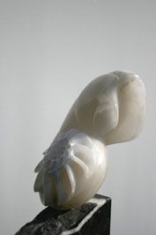 Uiltjes. Albast. Breed 80 cm - hoog 55 cm.